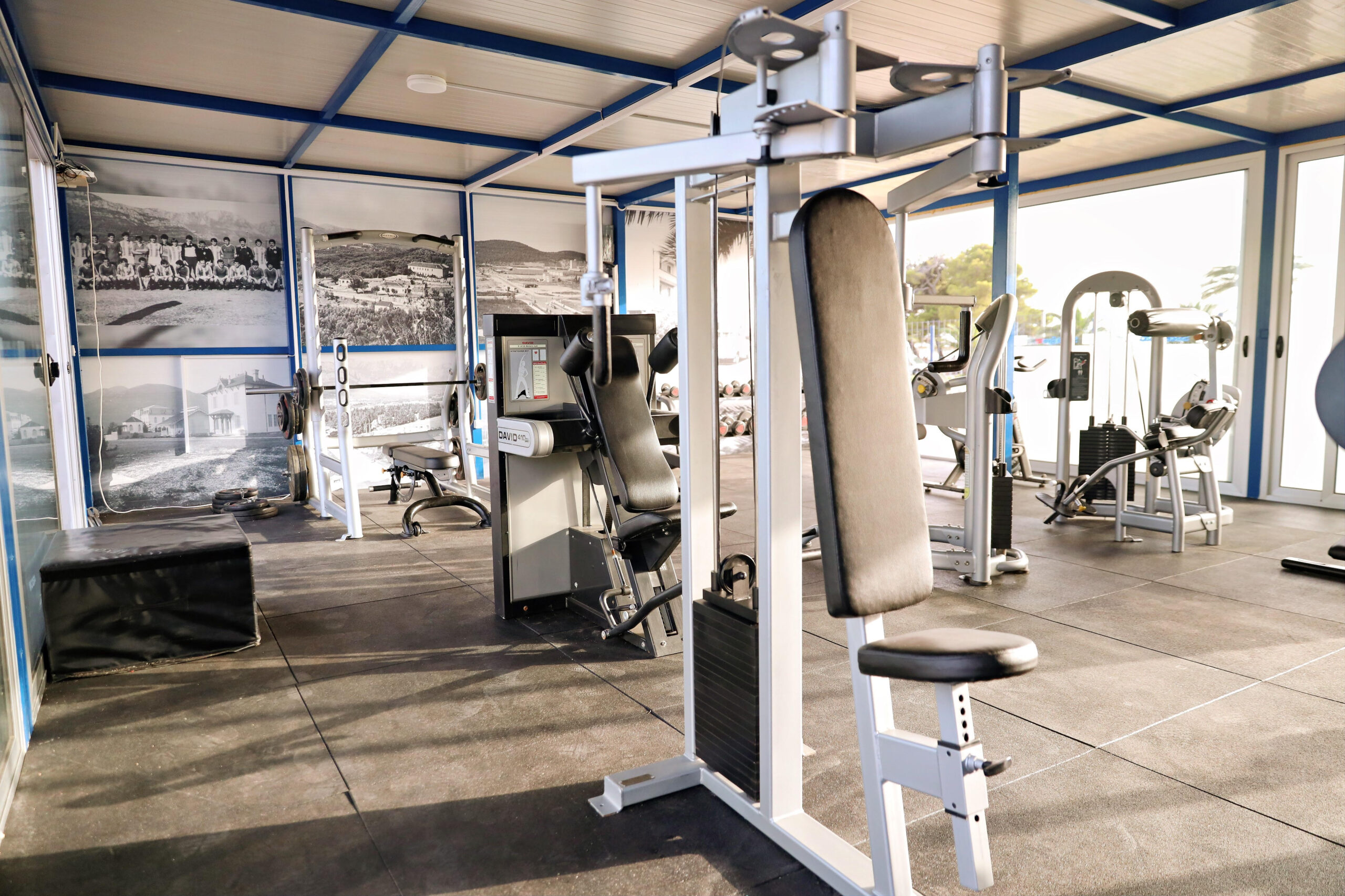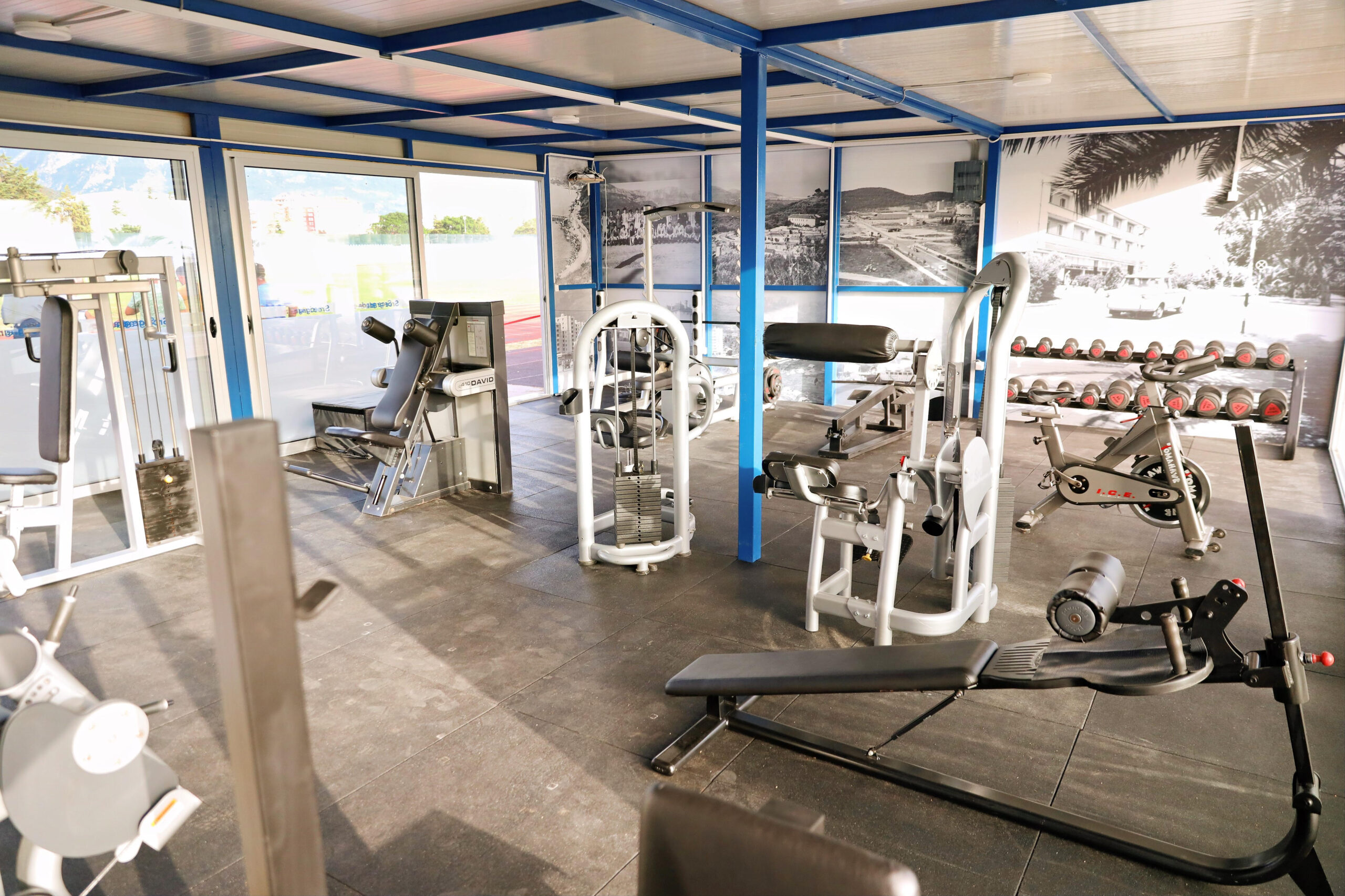 U teretani koja se nalazi pored tartan staze kod zapadne tribine, na raspolaganju je 15 sprava. Enterijer ovog objekta krase velike crno-bijele fotografije sa motivima Bara i barskih sportista iz sredine i druge polovine prošlog vijeka.
